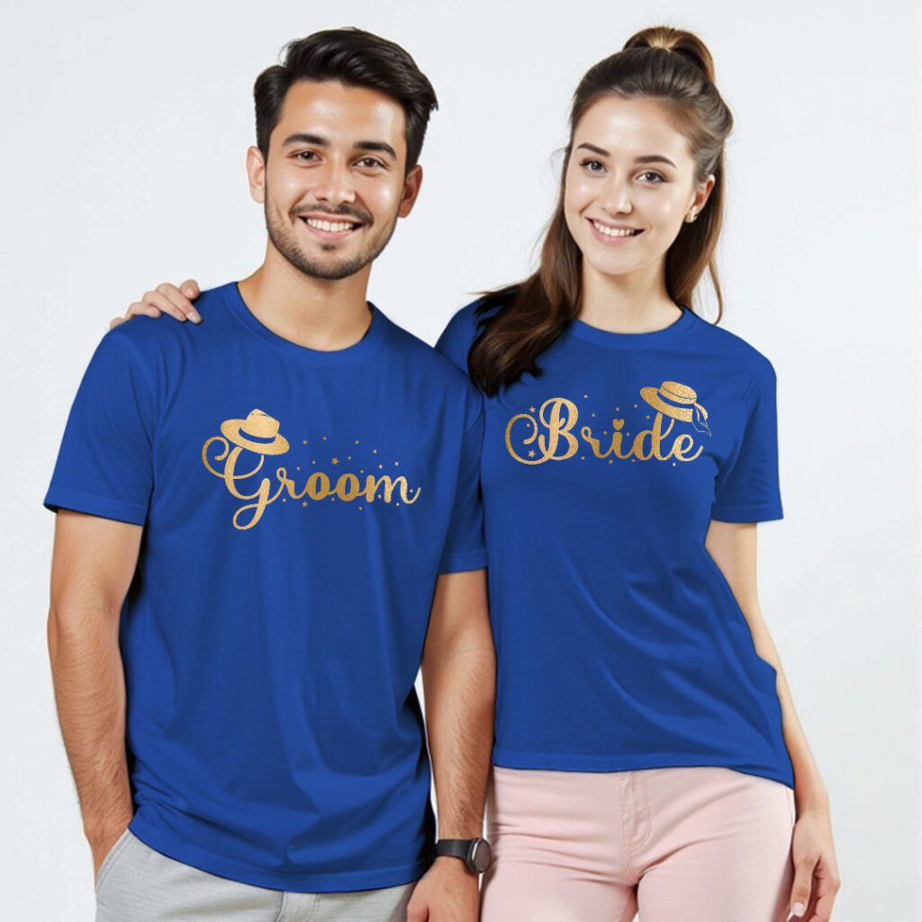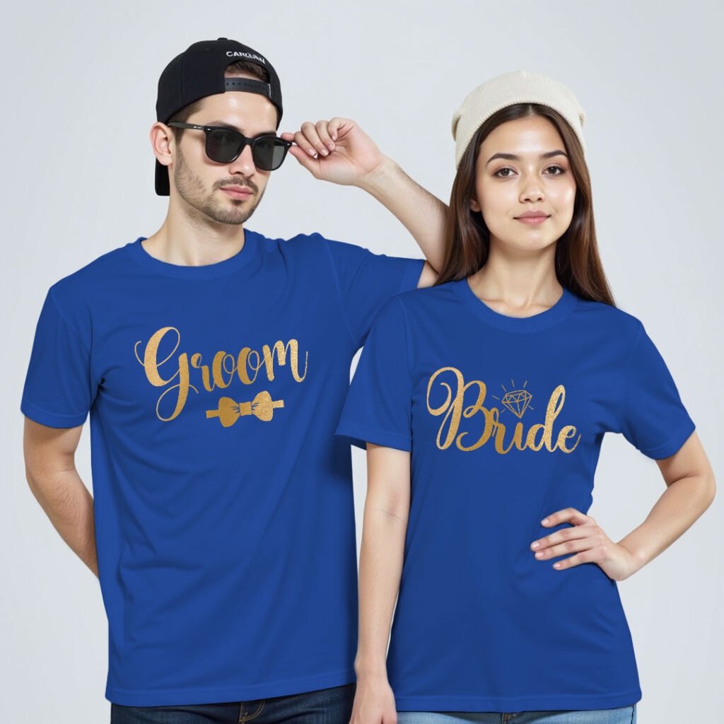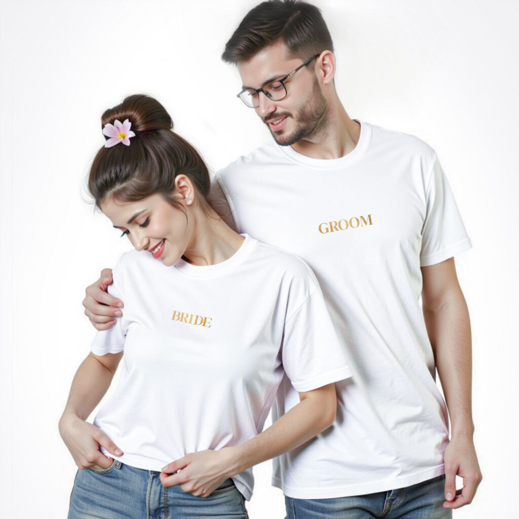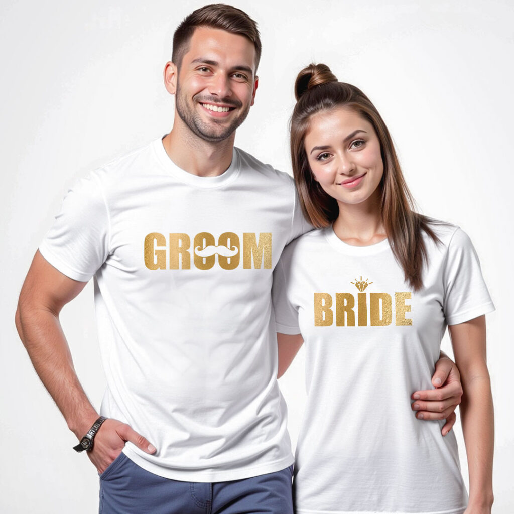 Groom Bride theme Gold Printed Wedding T-shirt