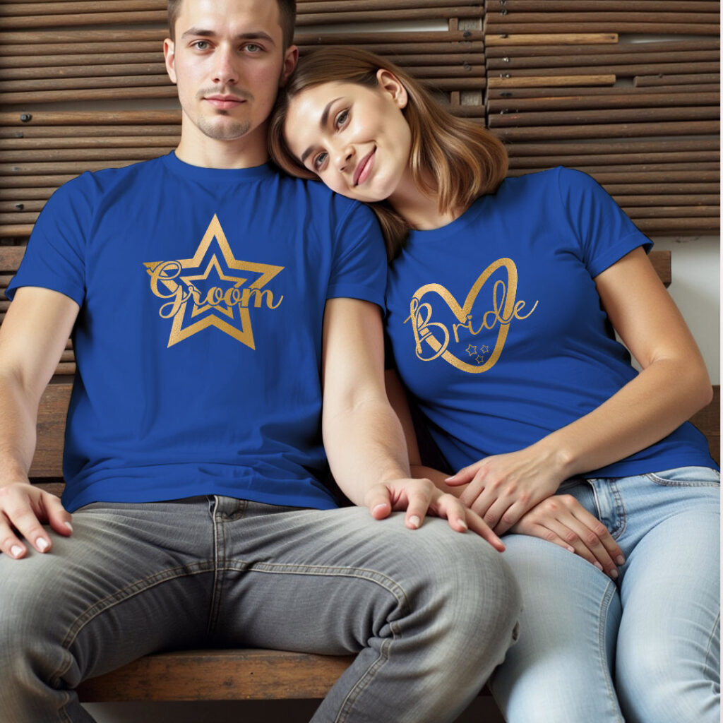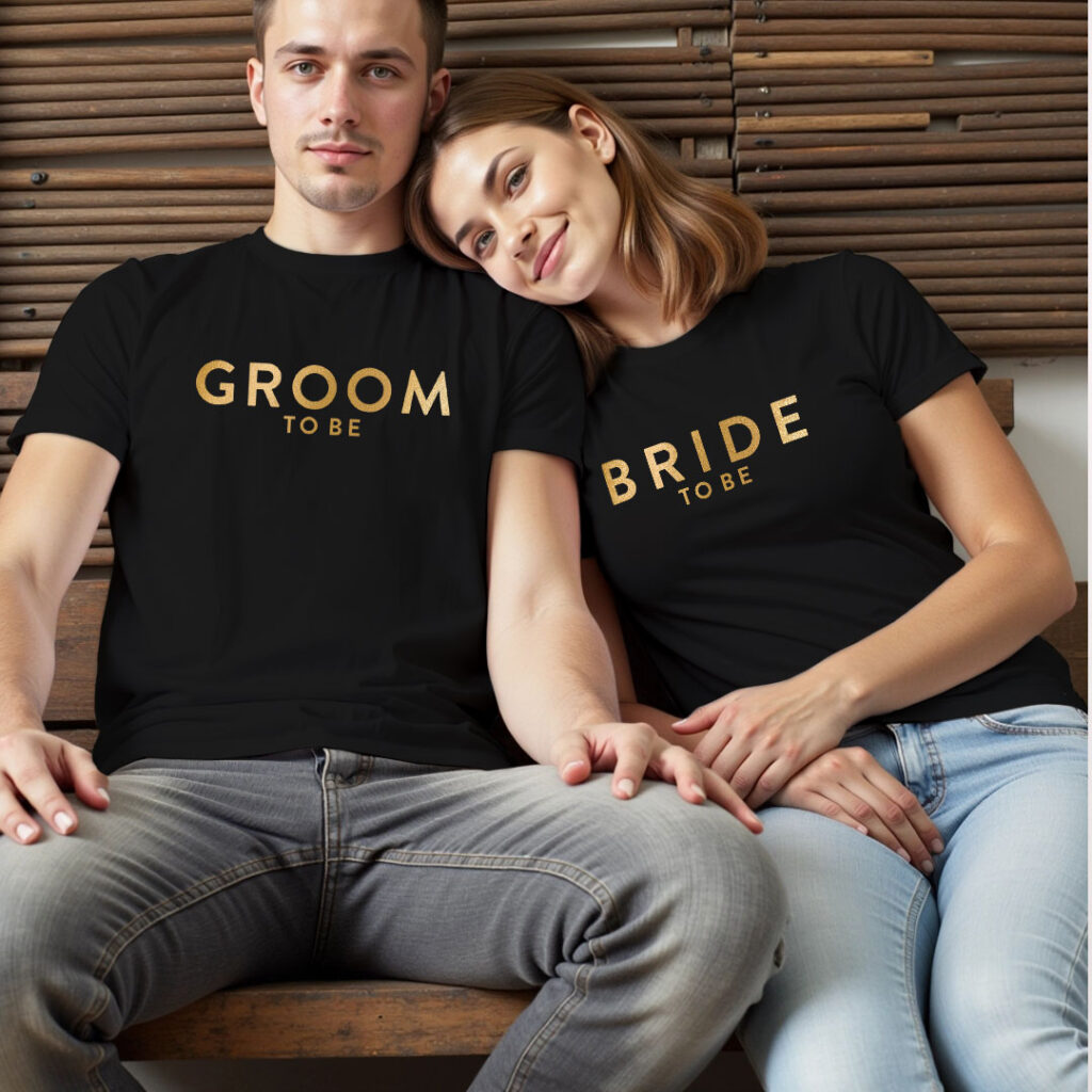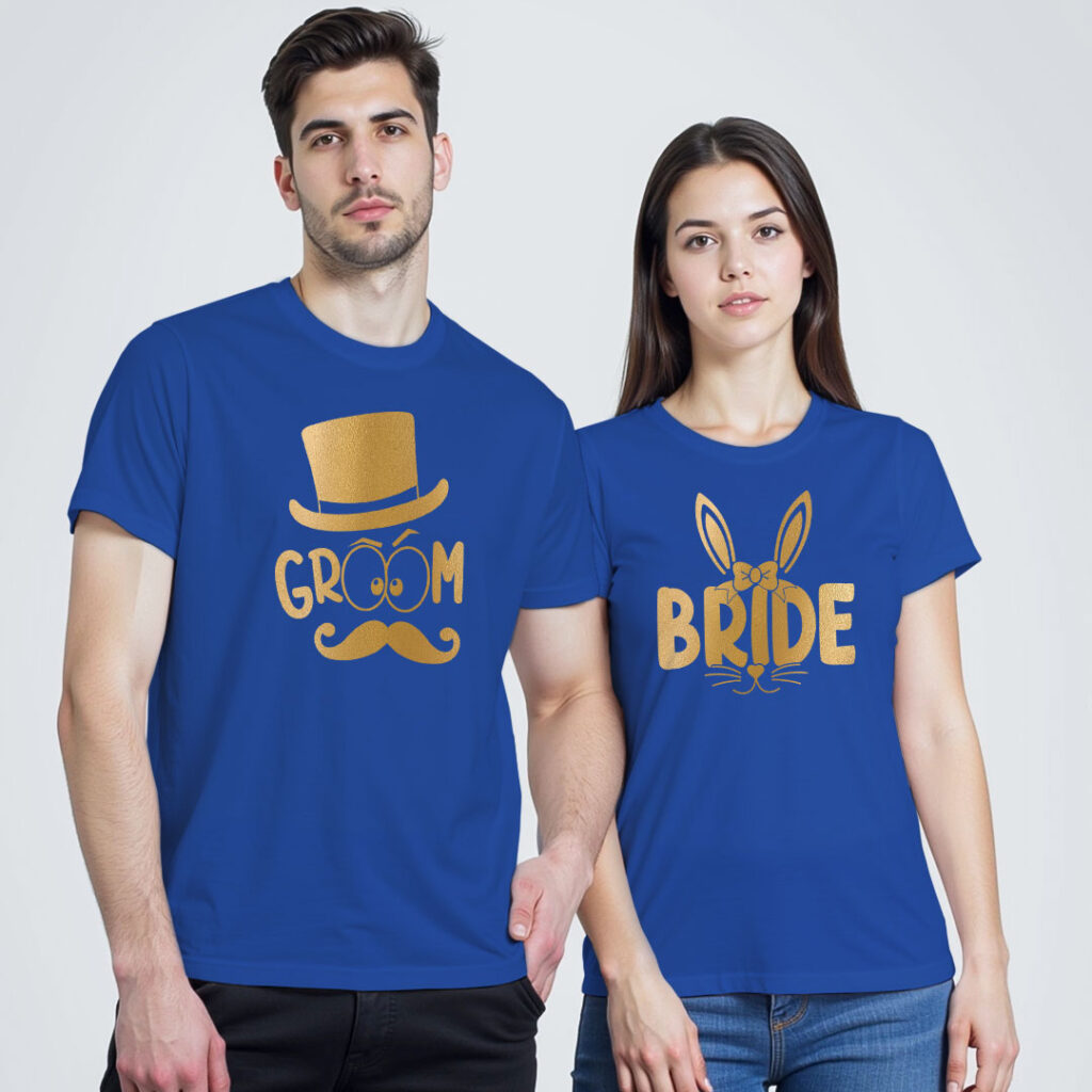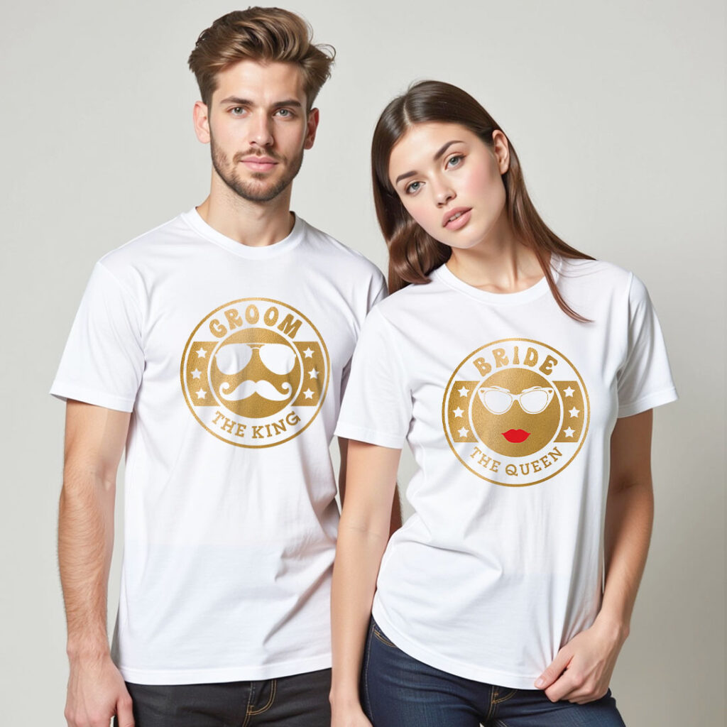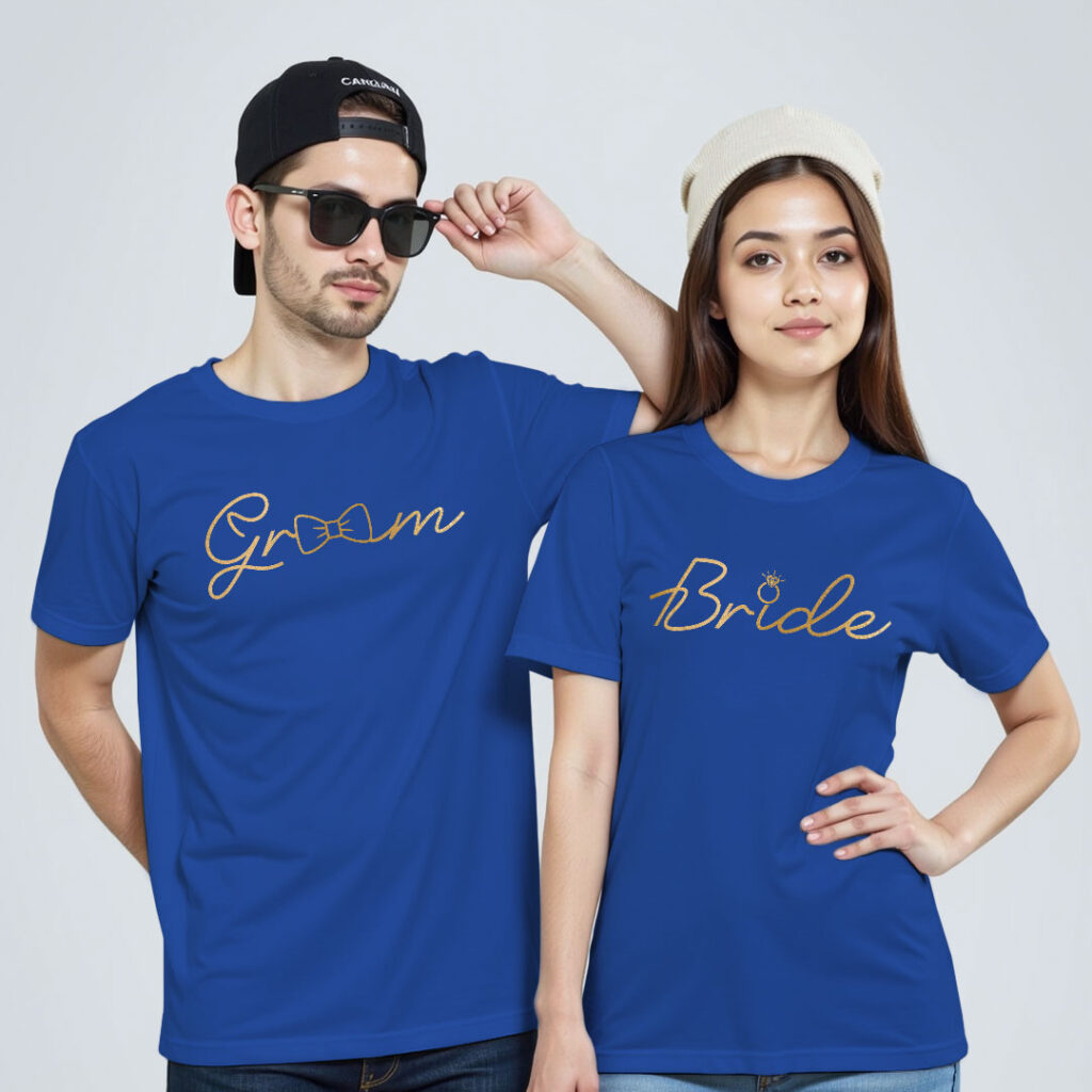 Groom Bride theme Gold Printed Wedding T-shirt