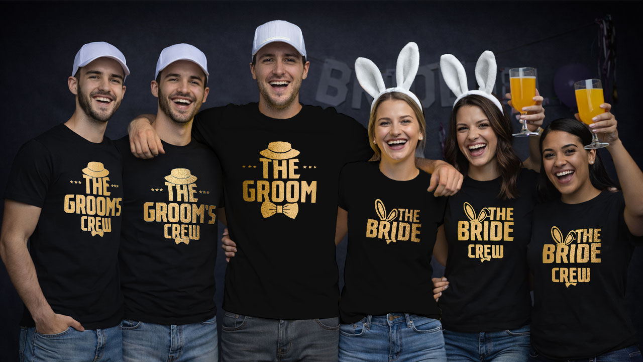 Custom Bachelor Party Groom Bride Gold Printed Wedding T-shirt