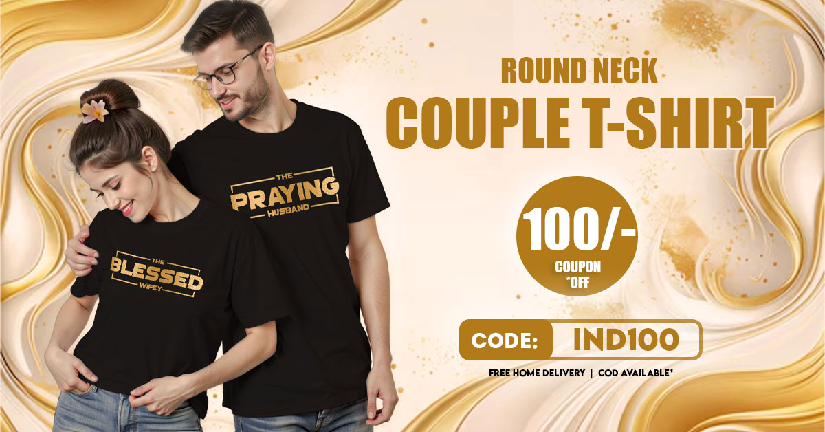 Praying Husband Blessed Wife Gold Printed Couple T-shirt