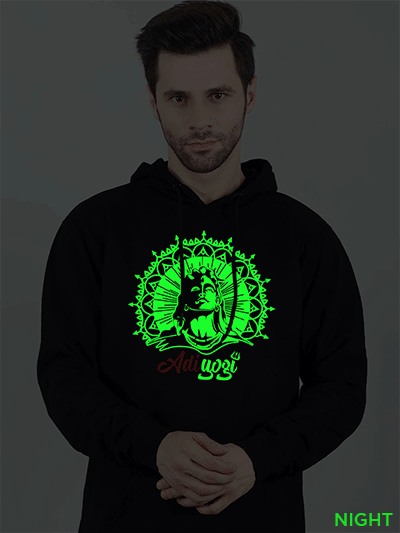 This Hoodie Print absorbs light during the day and emits it at night. The print on the Hoodie will also charge in sunlight or Tubelight and glow in the dark. The duration of the glow depends on the amount of light absorbed by the print