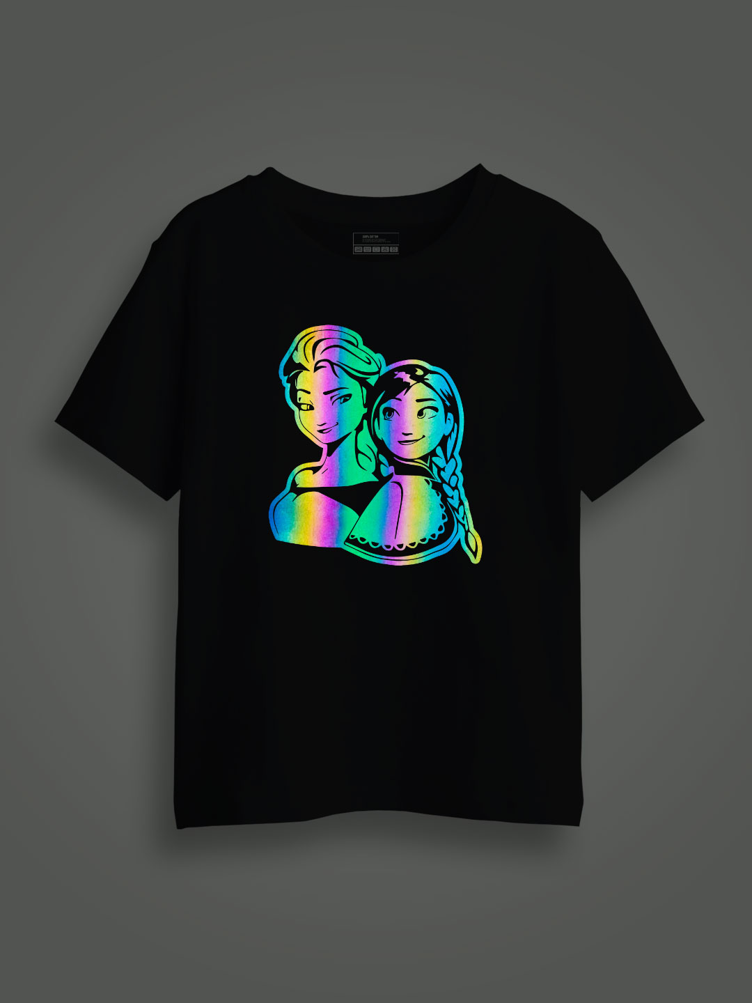Anna Elsa Frozen Rainbow Reflective Kids T-shirt