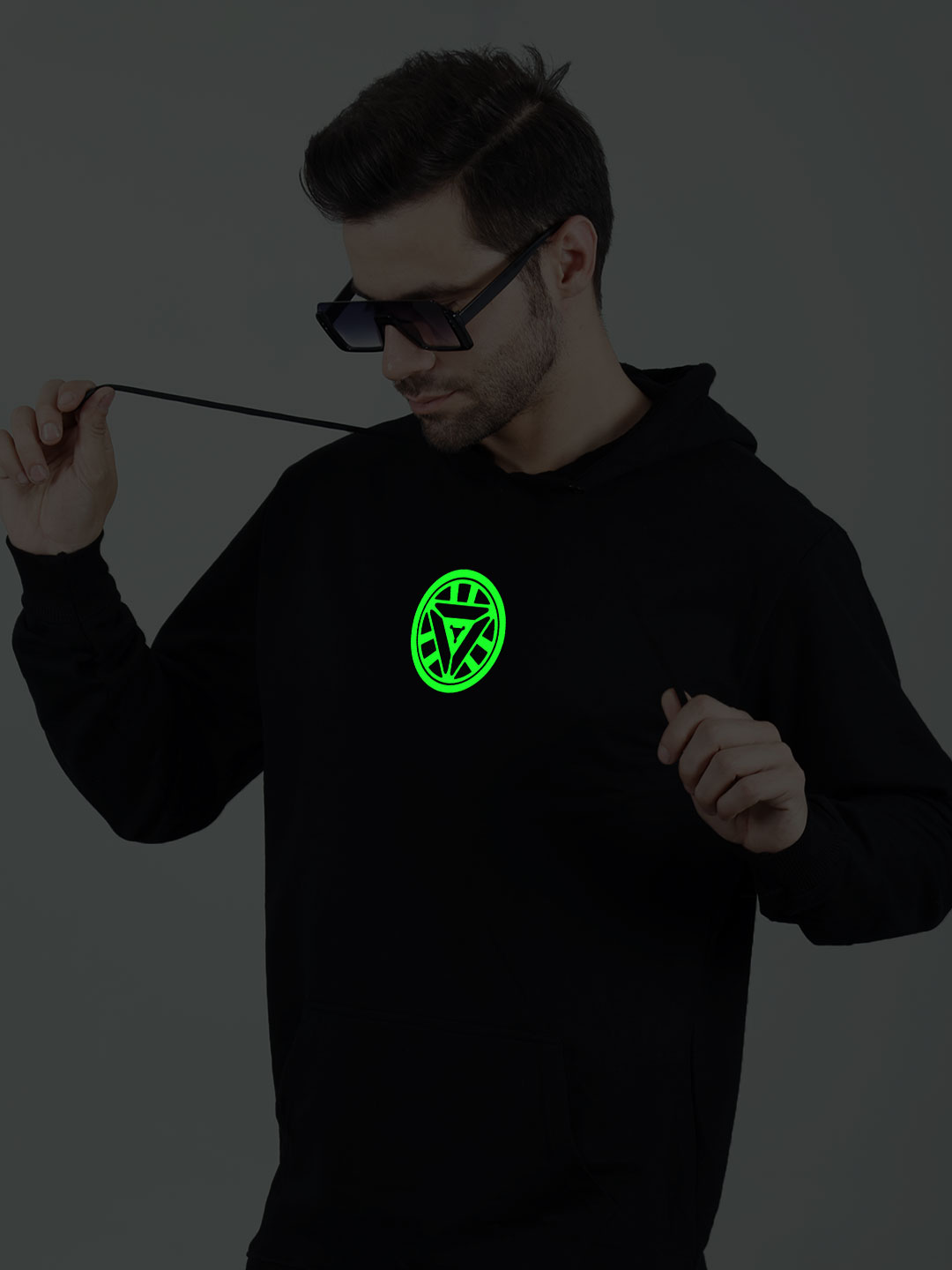 This Hoodie Print absorbs light during the day and emits it at night. The print on the Hoodie will also charge in sunlight or Tubelight and glow in the dark. The duration of the glow depends on the amount of light absorbed by the print