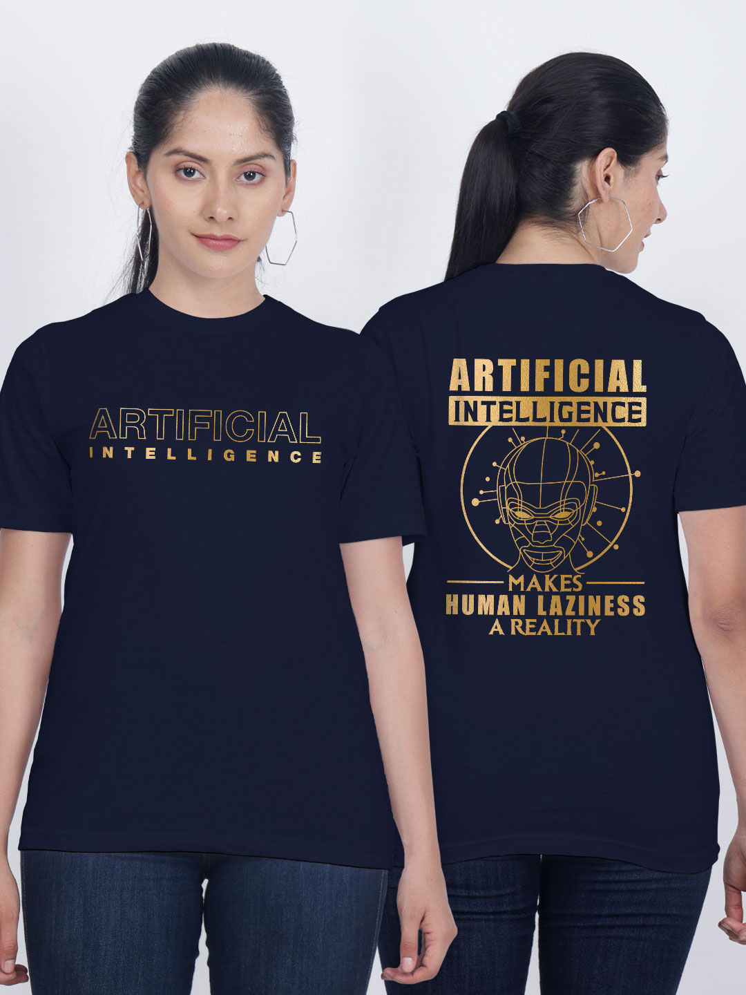 Artificial Inteligence Gold Printed Women T-shirt