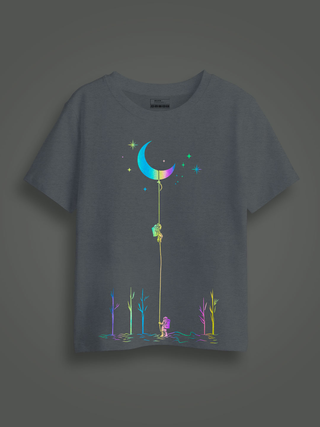 Astronaut and Moon Rainbow Reflective Kids T-shirt