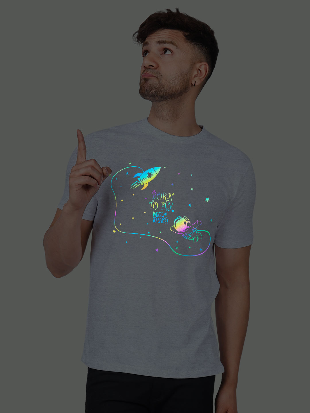 Astronaut Born to Fly Men Rainbow Reflective T-shirt