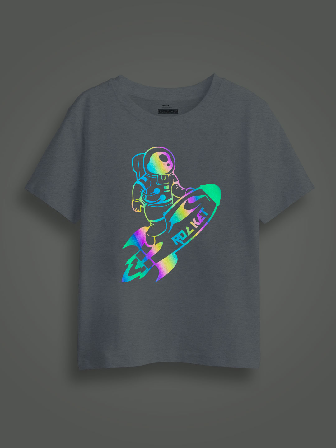 Astronaut Rocket Rainbow Reflective Kids T-shirt