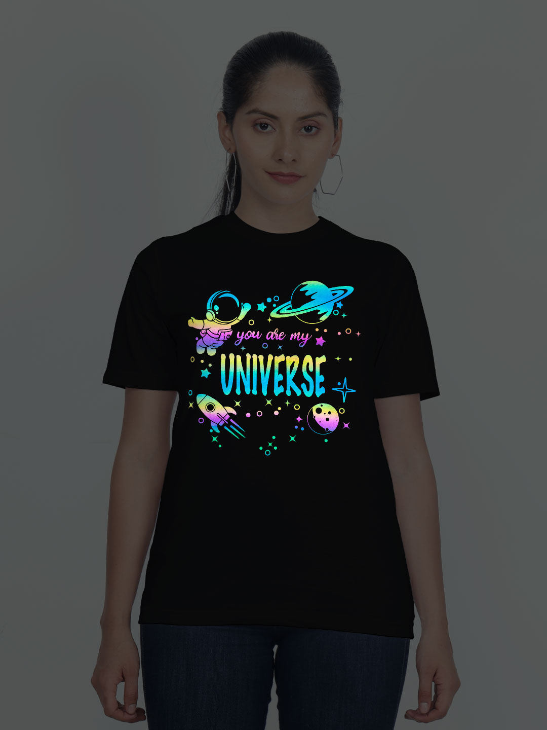 Astronaut Universe Glow in Dark Women T-shirt