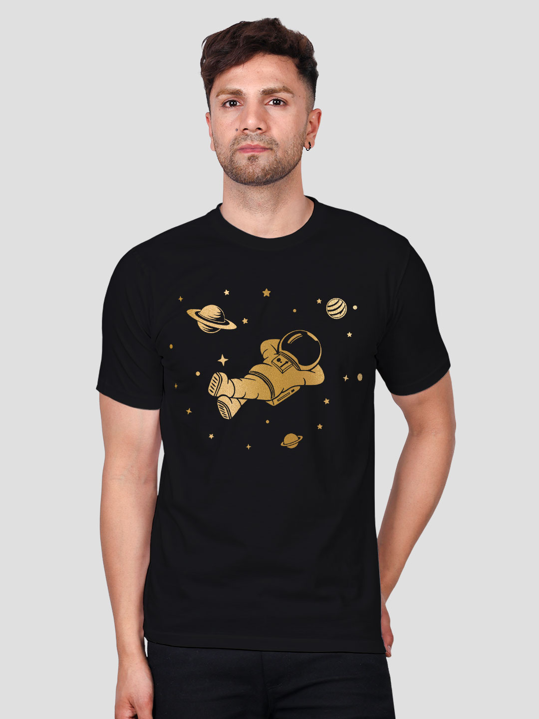 Astronaut with Stars Men Gold Printed T-shirt