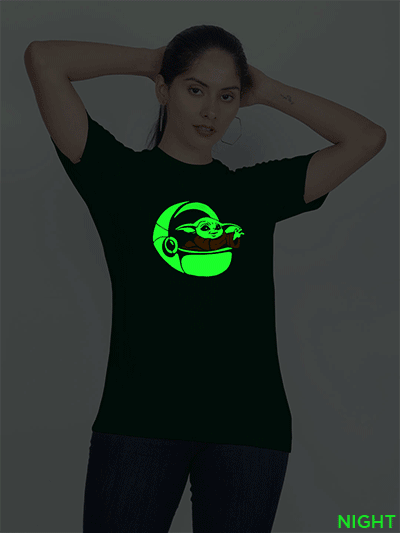 This T-shirt Print absorbs light during the day and emits it at night. The print on the T-shirt will also charge in sunlight or Tubelight and glow in the dark. The duration of the glow depends on the amount of light absorbed by the print