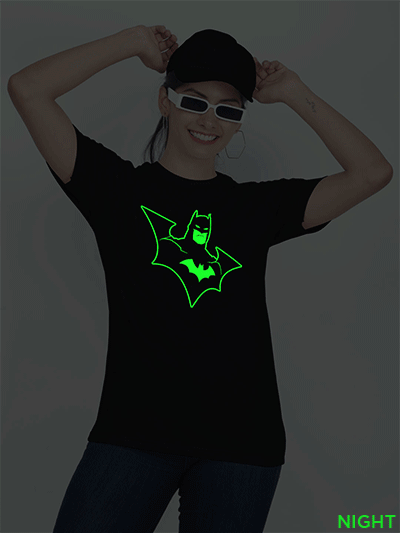 This T-shirt Print absorbs light during the day and emits it at night. The print on the T-shirt will also charge in sunlight or Tubelight and glow in the dark. The duration of the glow depends on the amount of light absorbed by the print
