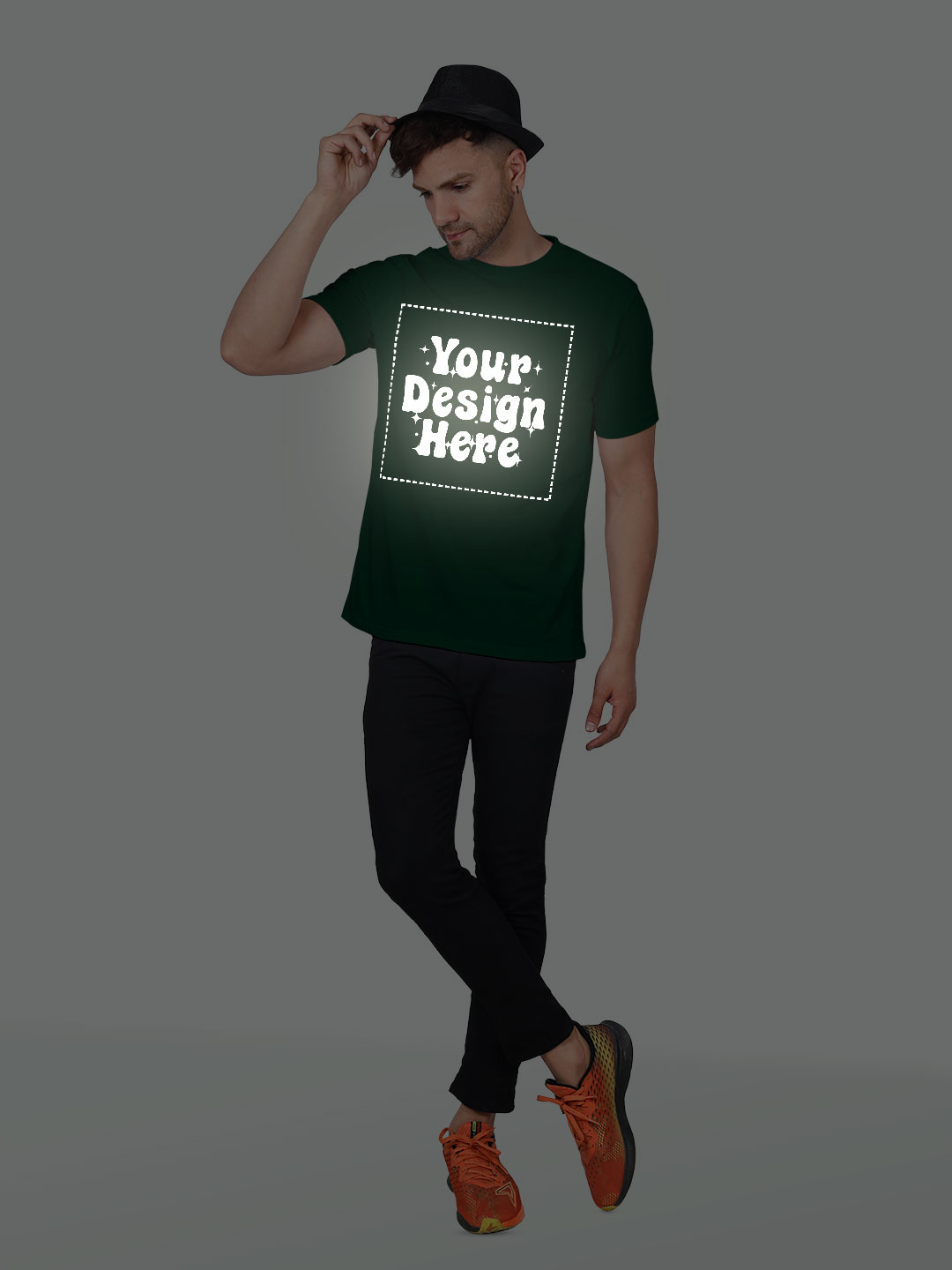 During light hits the print, Reflective Print reflect light. Best for Party wear and Highway or Road also in Night or Day. During Vehicle Lights hits the Print. T-shirt Print will be visible like Reflective effect