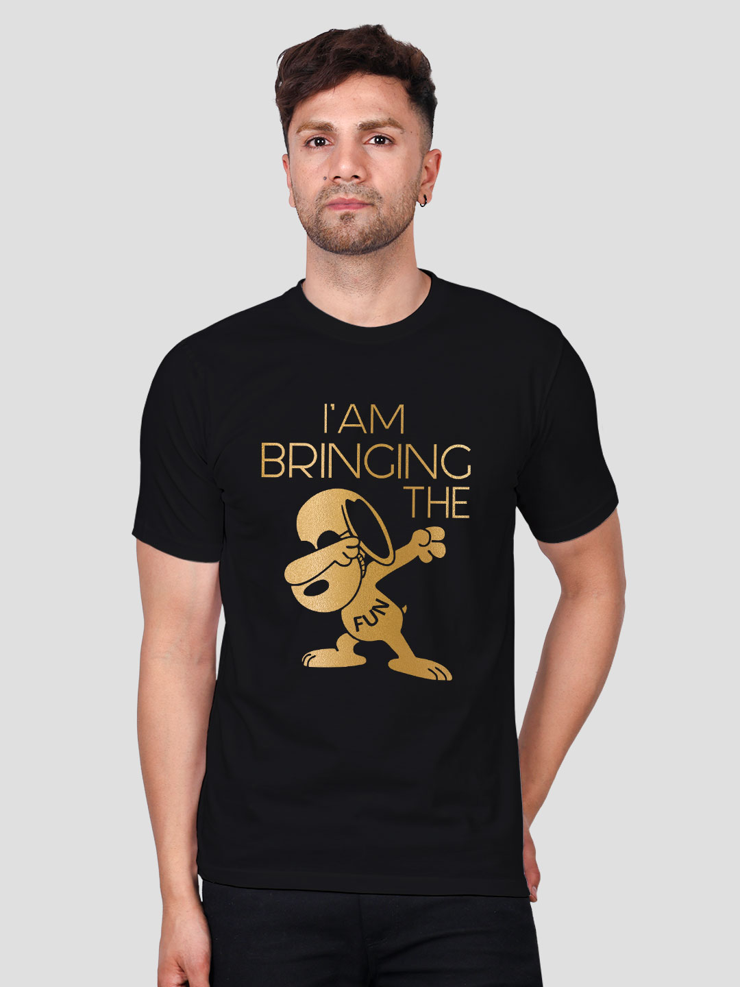 Bringing the fun Men Gold Printed T-shirt
