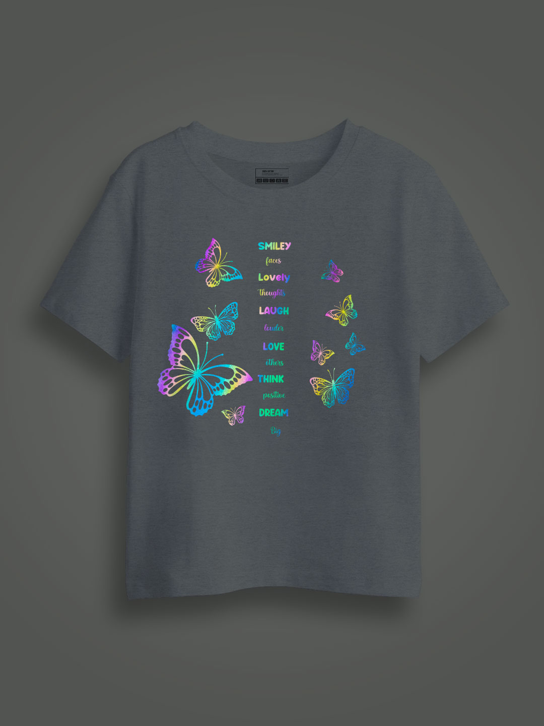 Butterfly Smiley Rainbow Reflective Kids T-shirt