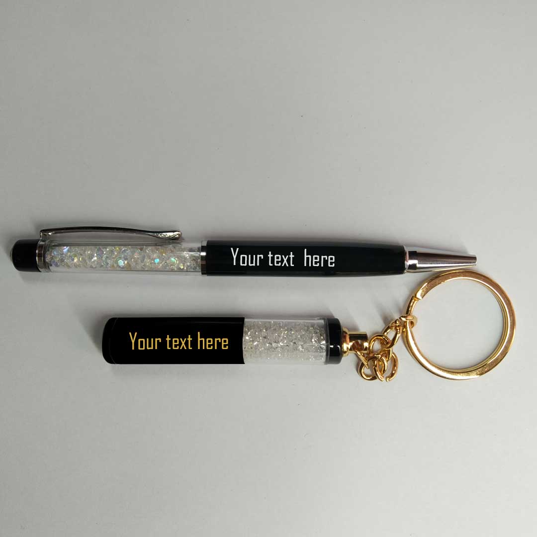 Combo of Pen and Metal Keychain with personalised your text or design. Under 1 color design or text only