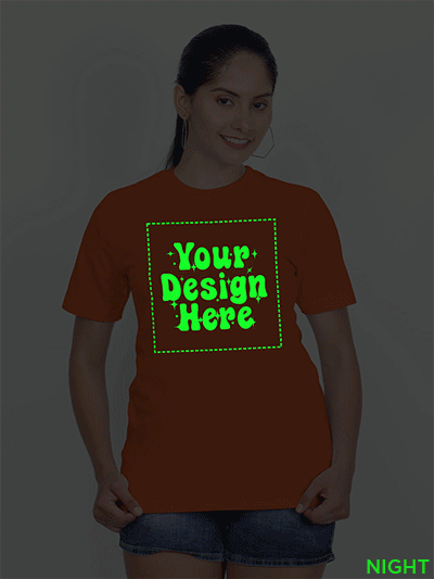 This T-shirt absorbs light during the day and emits it at night. The print on the T-shirt will also charge in sunlight or Tubelight and glow in the dark. The duration of the glow depends on the amount of light absorbed by the print