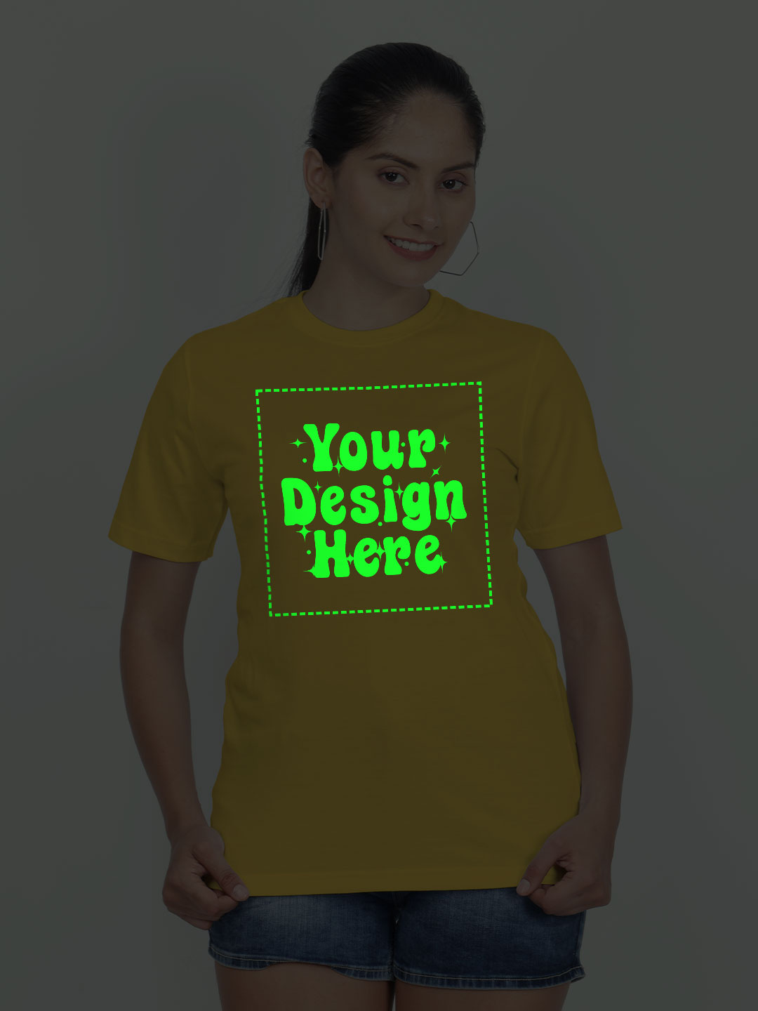 This T-shirt absorbs light during the day and emits it at night. The print on the T-shirt will also charge in sunlight or Tubelight and glow in the dark. The duration of the glow depends on the amount of light absorbed by the print