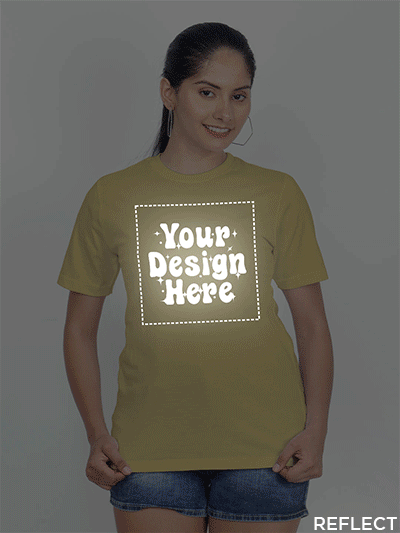 During light hits the print, Reflective Print reflect light. Best for Party wear and Highway or Road also in Night or Day. During Vehicle Lights hits the Print. T-shirt Print will be visible like Reflective effect