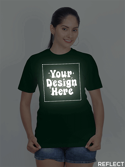 During light hits the print, Reflective Print reflect light. Best for Party wear and Highway or Road also in Night or Day. During Vehicle Lights hits the Print. T-shirt Print will be visible like Reflective effect
