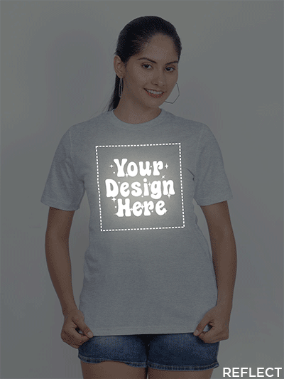 During light hits the print, Reflective Print reflect light. Best for Party wear and Highway or Road also in Night or Day. During Vehicle Lights hits the Print. T-shirt Print will be visible like Reflective effect