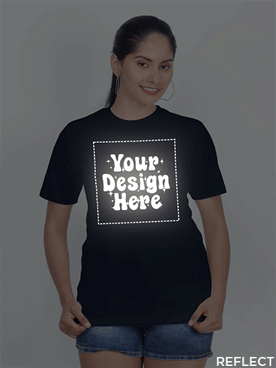 During light hits the print, Reflective Print reflect light. Best for Party wear and Highway or Road also in Night or Day. During Vehicle Lights hits the Print. T-shirt Print will be visible like Reflective effect