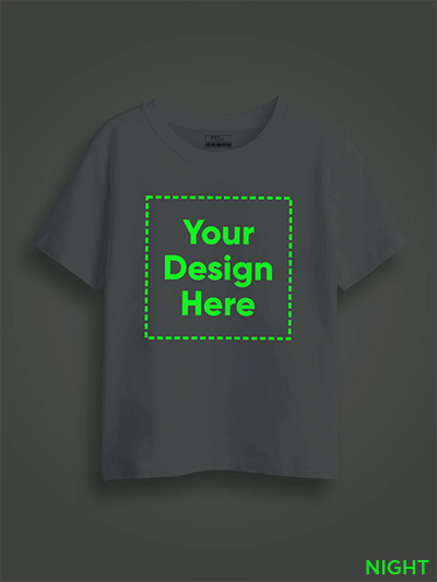 This T-shirt absorbs light during the day and emits it at night. The print on the T-shirt will also charge in sunlight or Tubelight and Glow in Dark in the dark. The duration of the Glow in Dark depends on the amount of light absorbed by the print