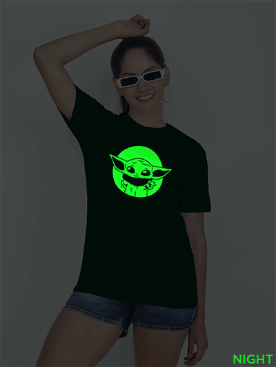 Cute Baby Yoda Glow in Dark Women T-shirt