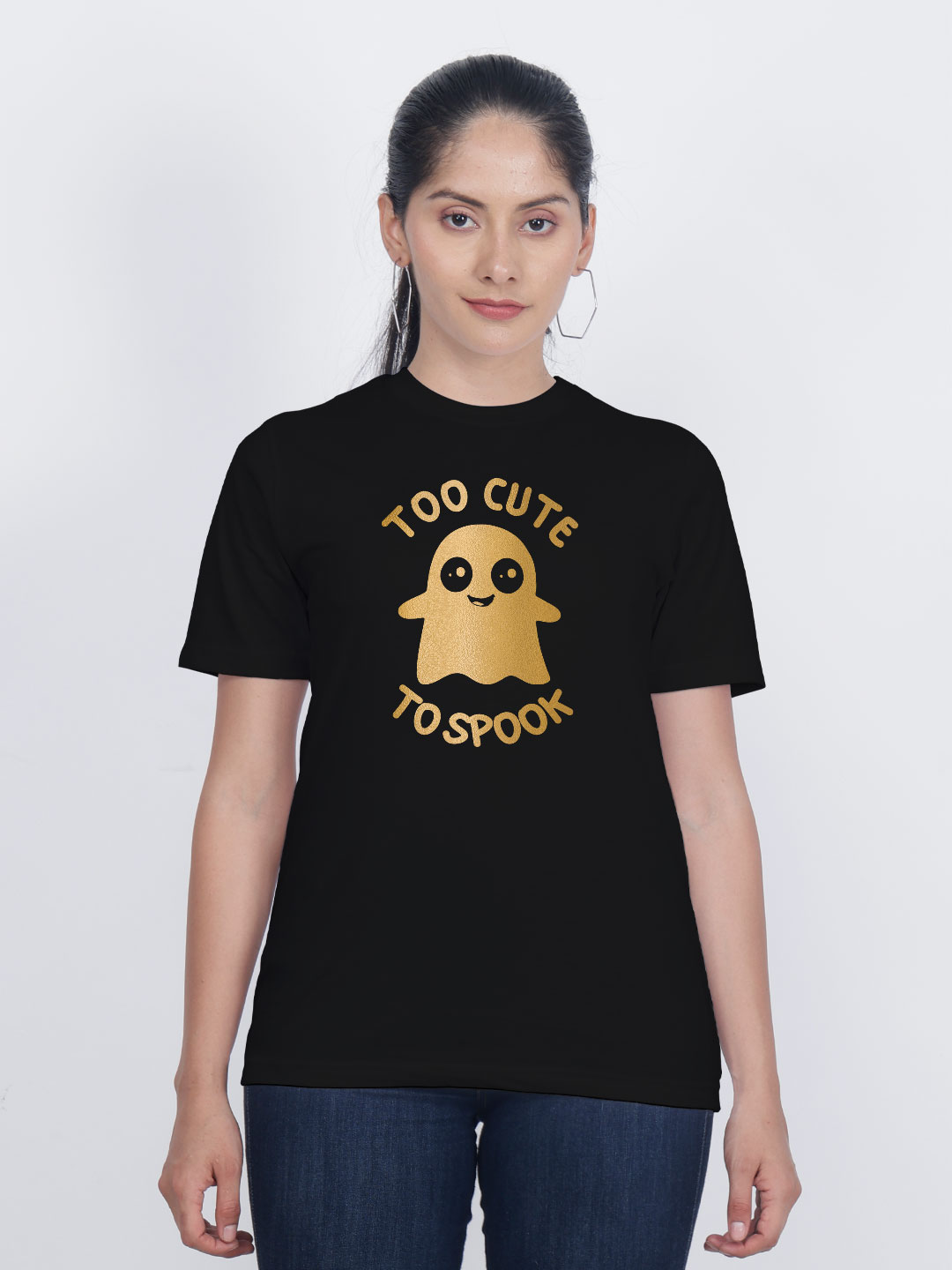 Cute Ghost Gold Printed Women T-shirt