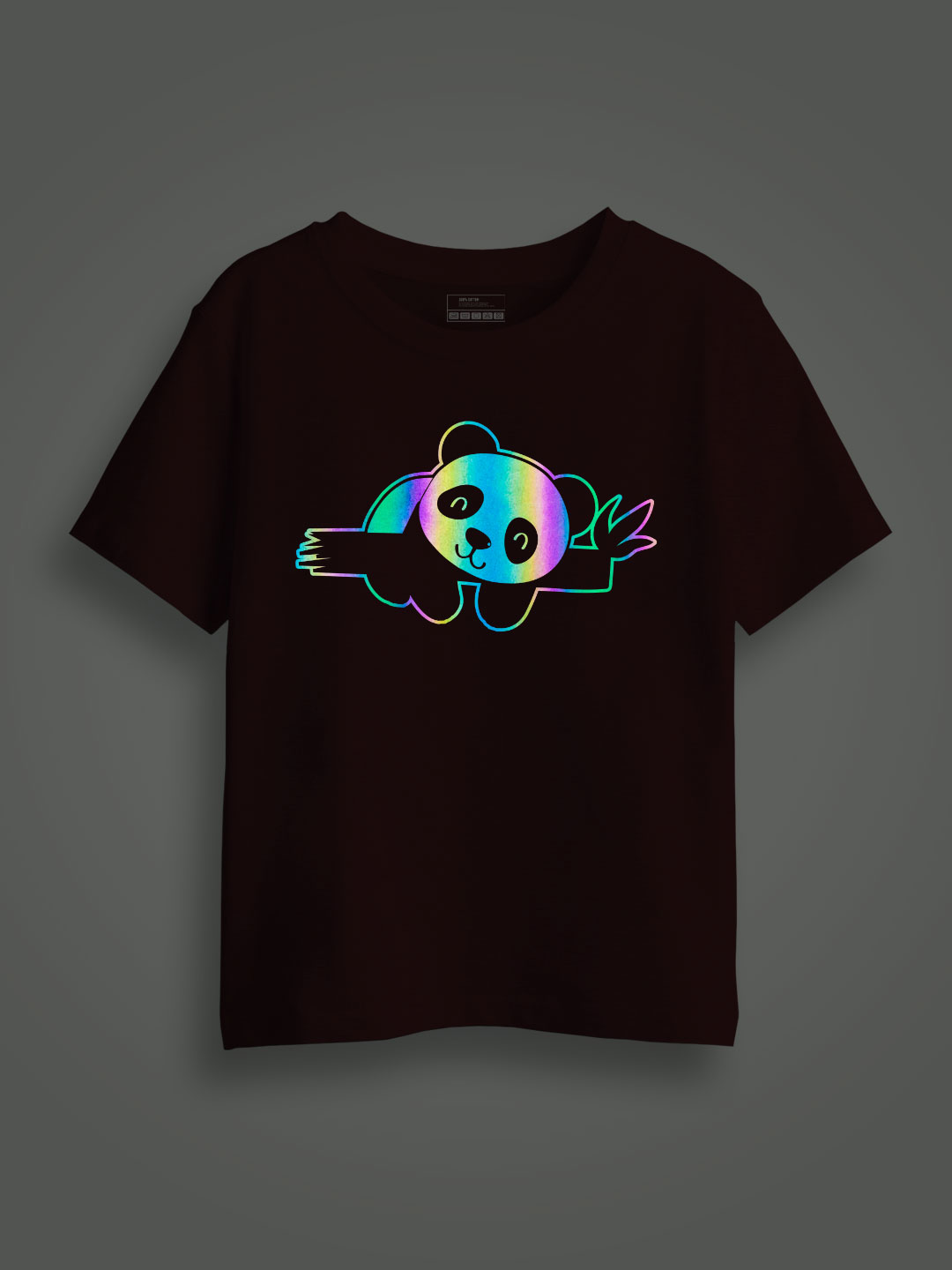 Cute Lazy Panda Rainbow Reflective Kids T-shirt