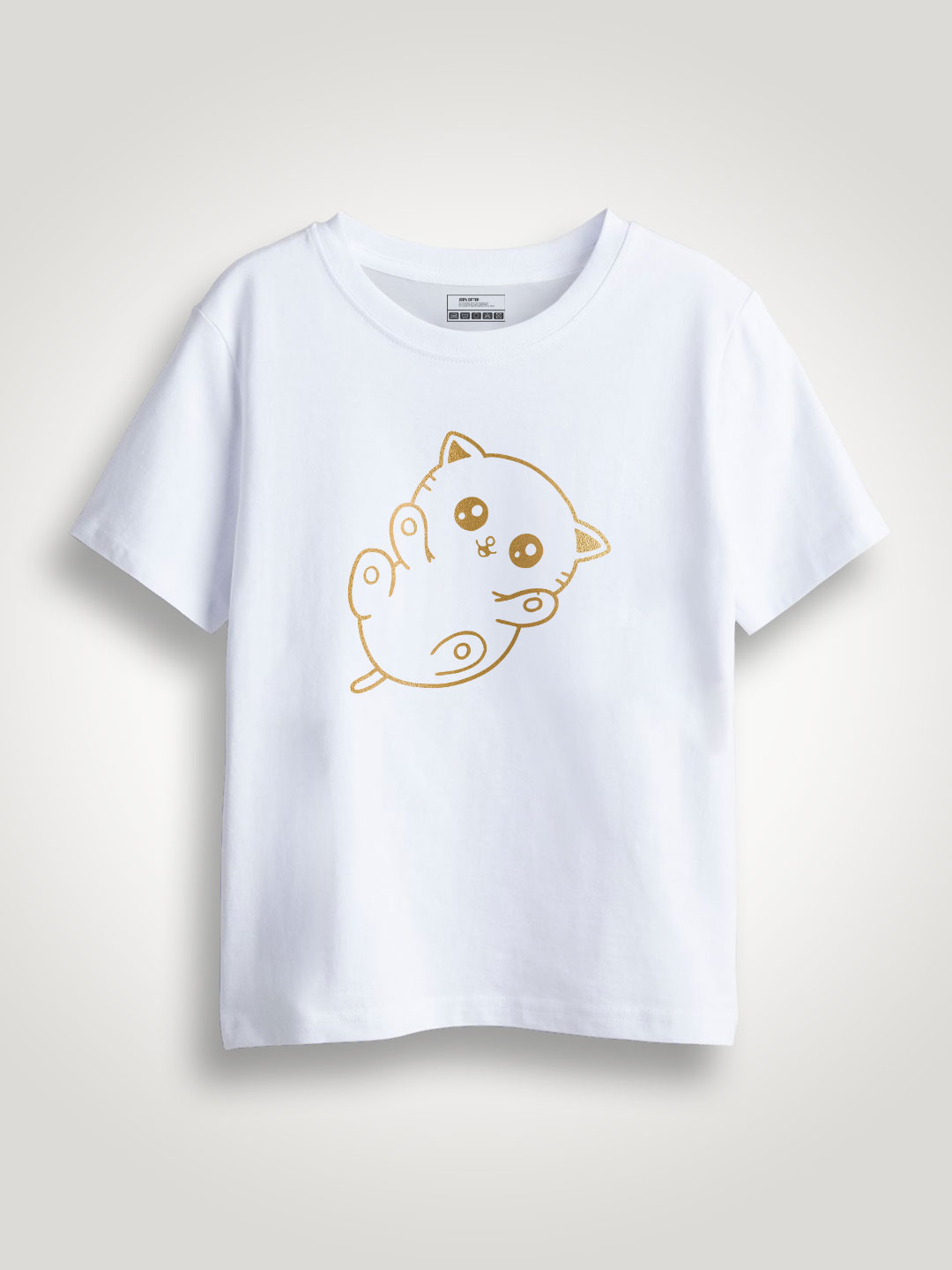 Cute Little Cat Gold Printed Kids T-shirt