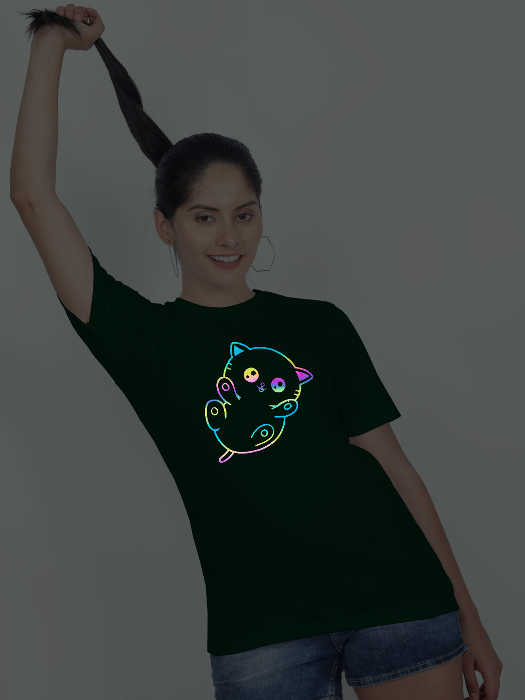 Cute Little Cat Rainbow Reflective Women T-shirt