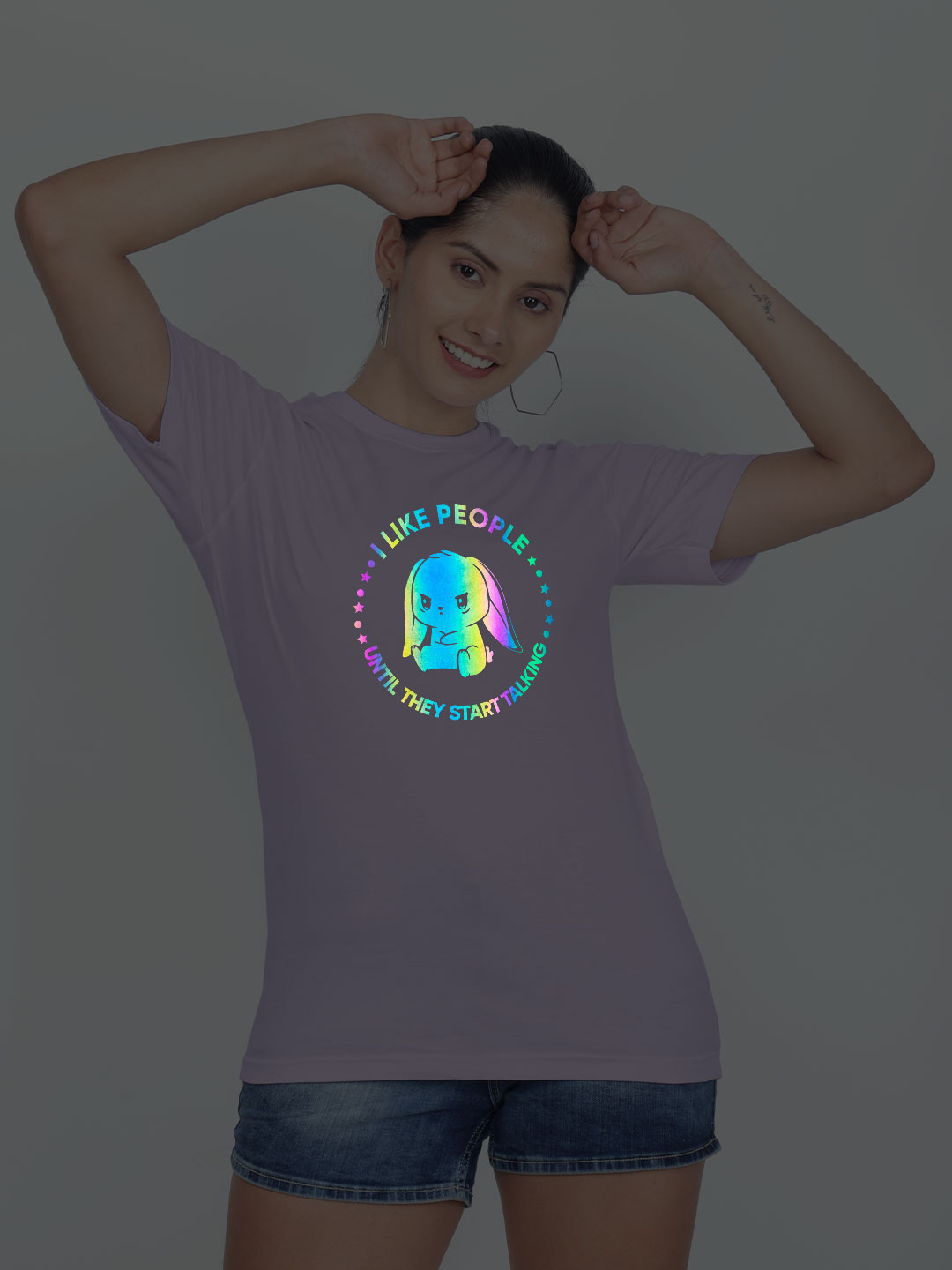 Cute Rabbit Like People Rainbow Reflective Women T-shirt