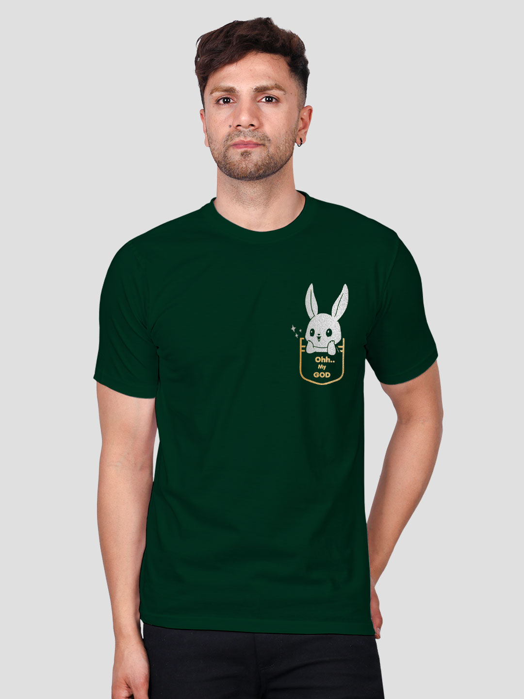 Cute Rabbit OMG Men Gold Printed T-shirt