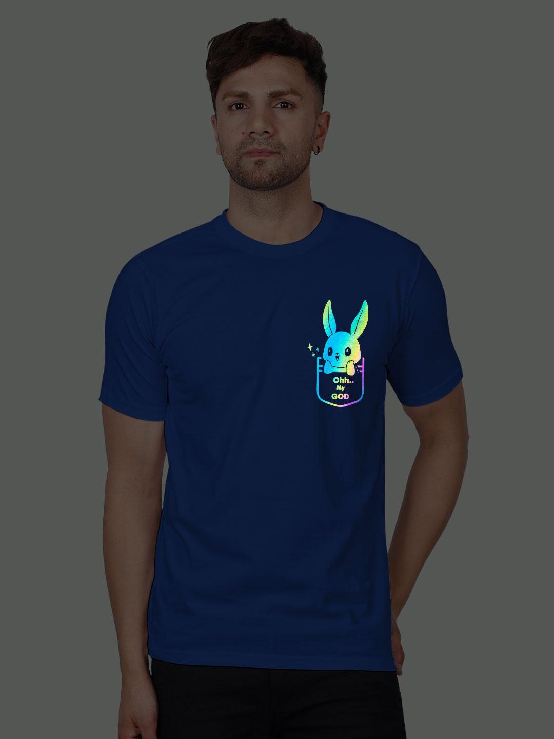 Cute Rabbit OMG Men Rainbow Reflective T-shirt