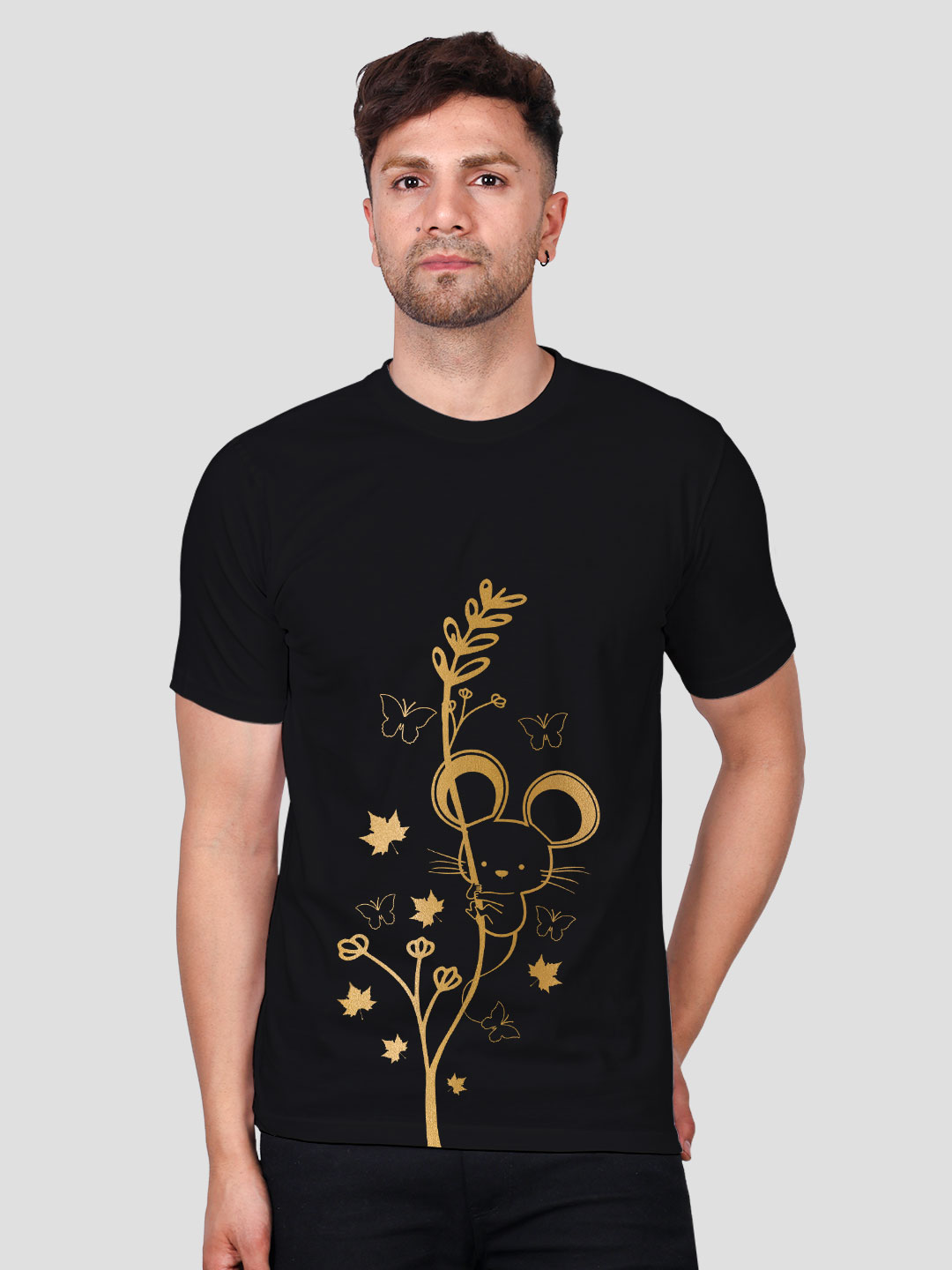 Cute Rat Butterfly Men Gold Printed T-shirt