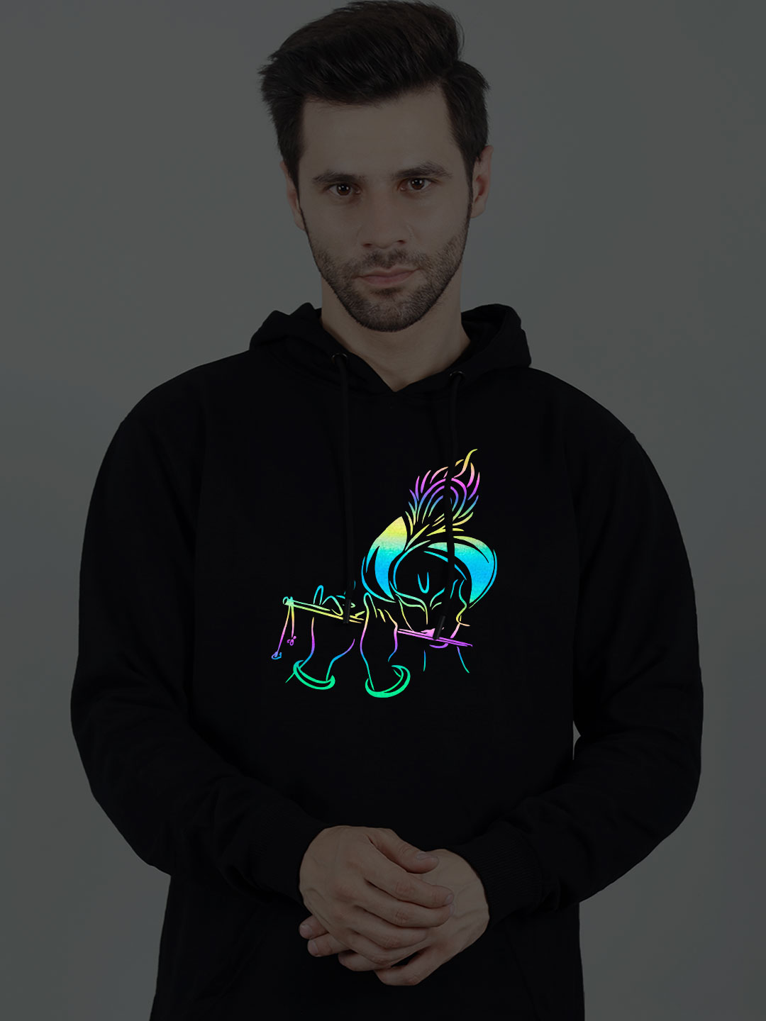 Flute Krishna Rainbow Reflective Man Black Hoodie