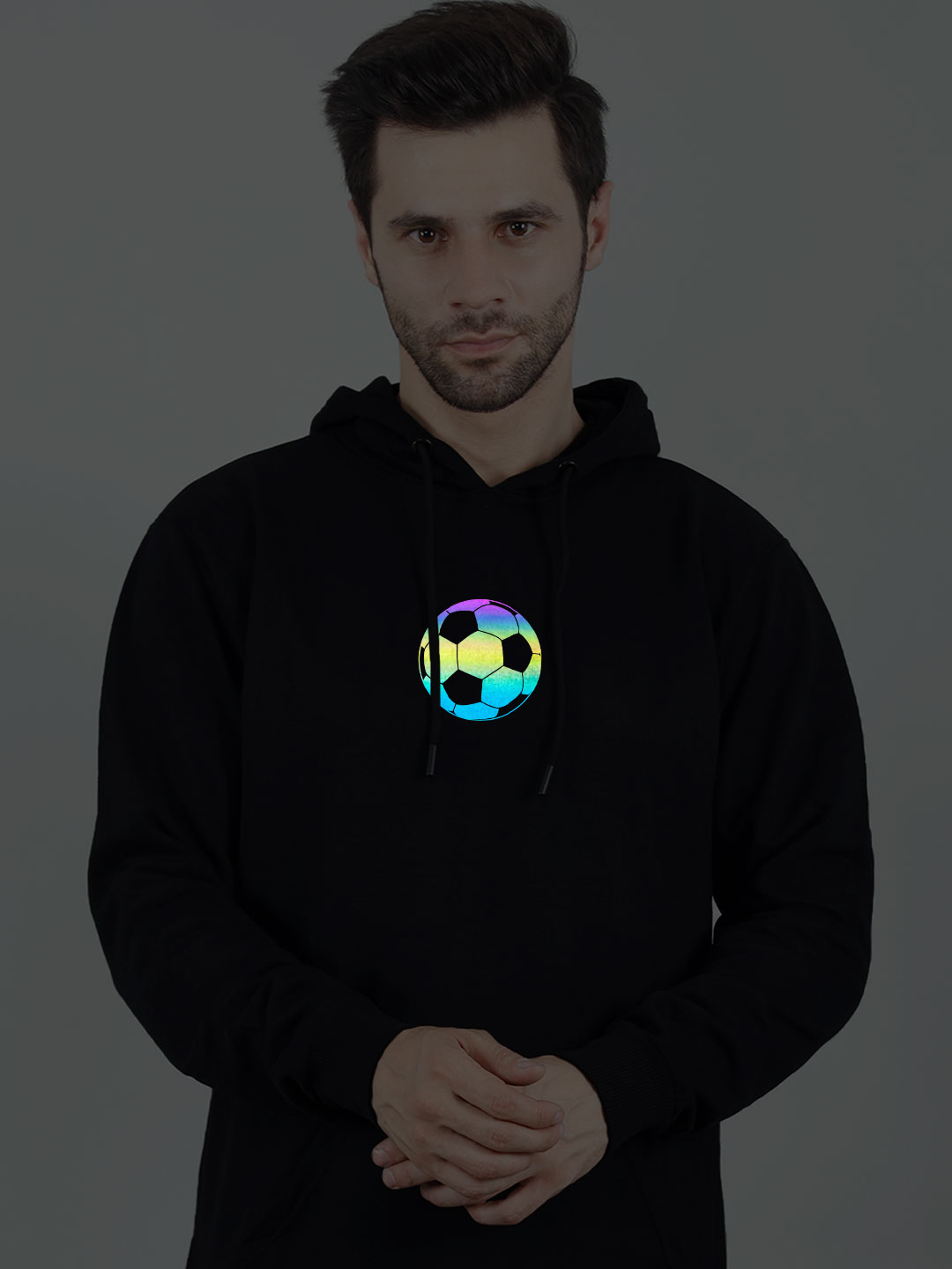 Rainbow Reflective Print reflect light, During light hits the print. Best for Party wear and Highway in Night or Day. During Vehicle Light Hits the Print. Hoodie will be Glow in Rainbow Effect
