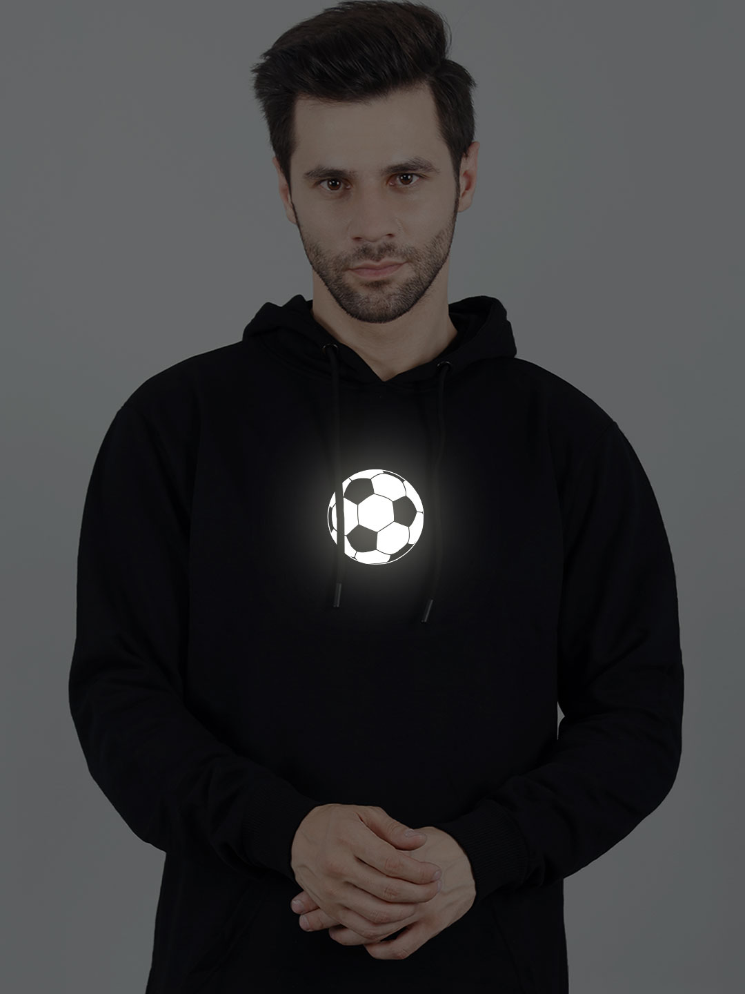 During light hits the print, Reflective Print reflect light. Best for Party wear and Highway or Road also in Night or Day. During Vehicle or other Light hits the Print. Hoodie Print will be visible white Glow