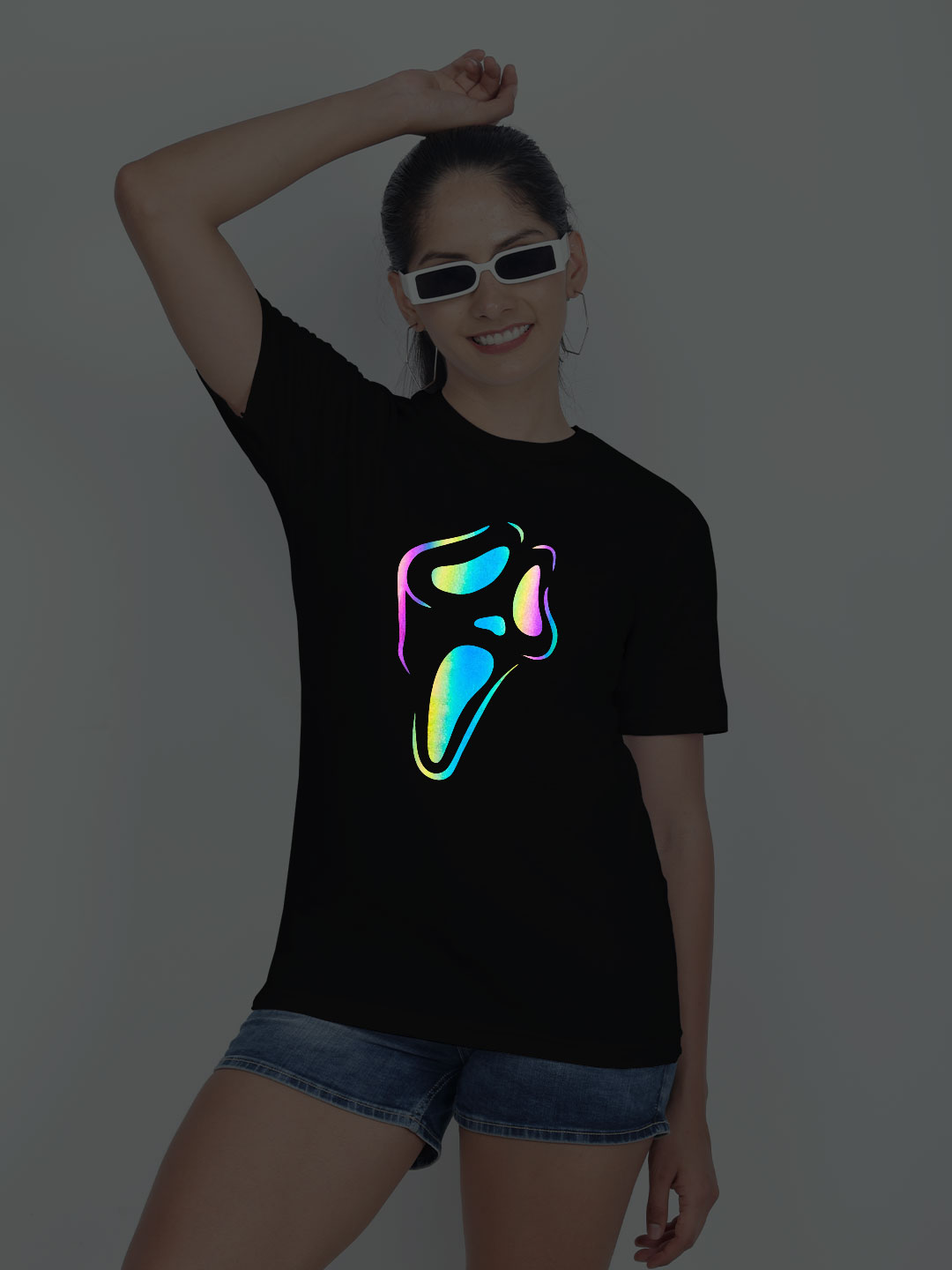 The Rainbow Reflective Print reflects light to create a stunning, multi-color glow effect. When light hits the print from different angles, it radiates a vibrant spectrum of colors, making it highly visible, especially from a distance. This ensures you stand out in any crowd, whether you’re at a party, pub, or group event.