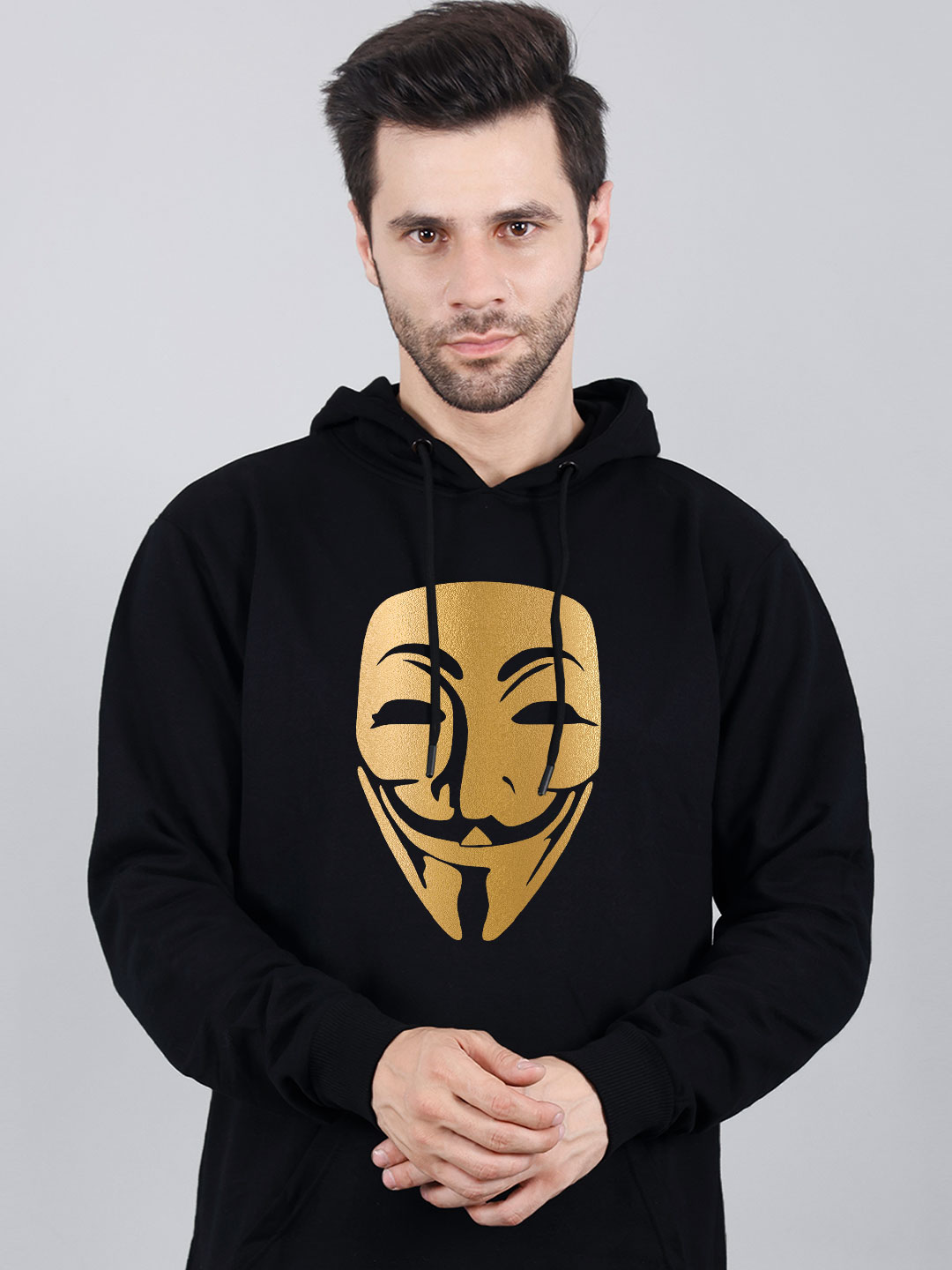 Hacker Face Hoodie Metalic Gold Print