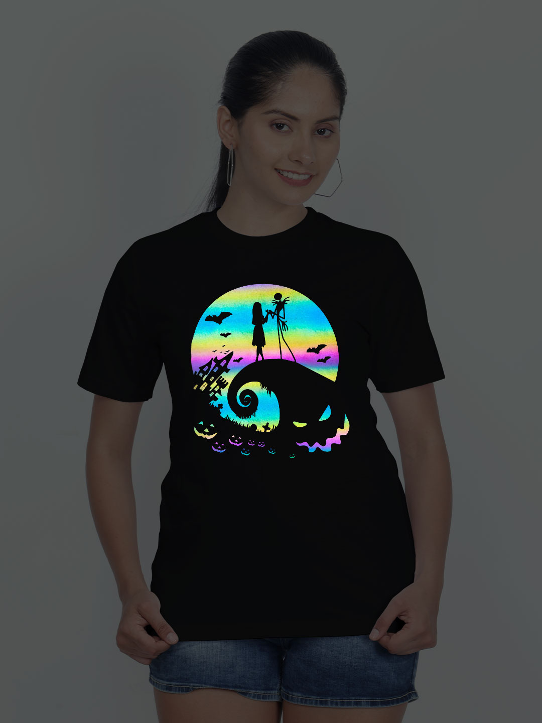 Halloween Night Rainbow Reflective Women T-shirt