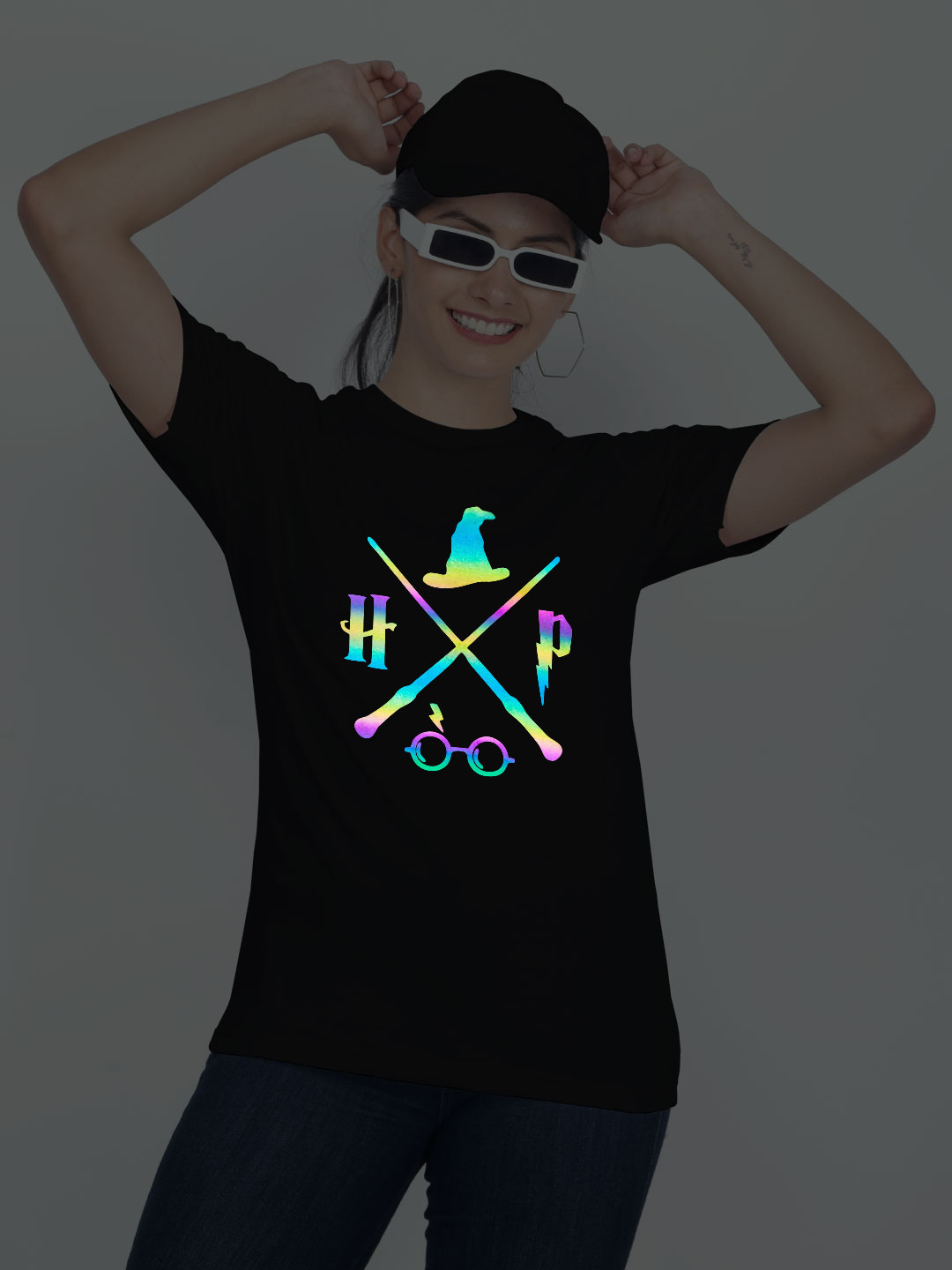 Harry Poter Halloween Rainbow Reflective Women T-shirt
