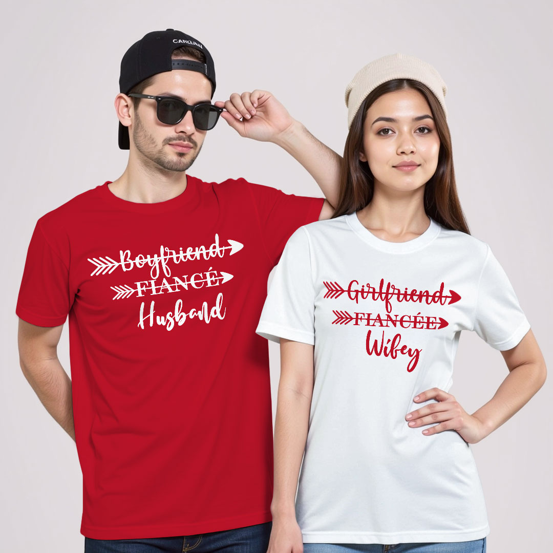 Celebrate your bond with the Husband Wifey Couple T-shirt featuring our vibrant Basic/Regular Print. Designed for lovebirds who enjoy standing out together, this eye-catching design fits every moment ? whether you’re out at a party, on a casual date, traveling, or just spending quality time.