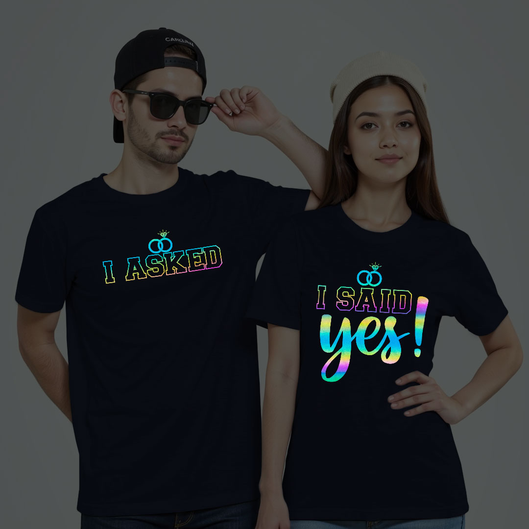 I Asked I Said Yes Couple Rainbow Reflective T-shirt
