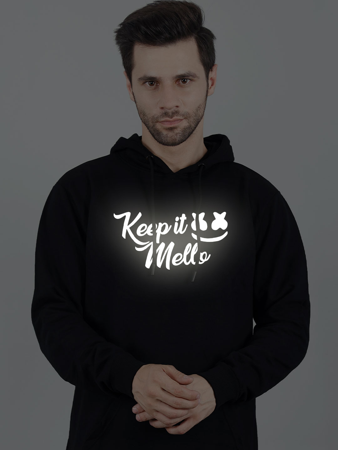 During light hits the print, Reflective Print reflect light. Best for Party wear and Highway or Road also in Night or Day. During Vehicle or other Light hits the Print. Hoodie Print will be visible white Glow