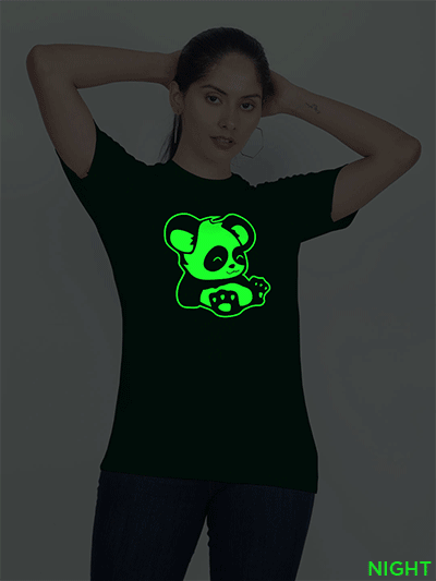 This T-shirt Print absorbs light during the day and emits it at night. The print on the T-shirt will also charge in sunlight or Tubelight and glow in the dark. The duration of the glow depends on the amount of light absorbed by the print