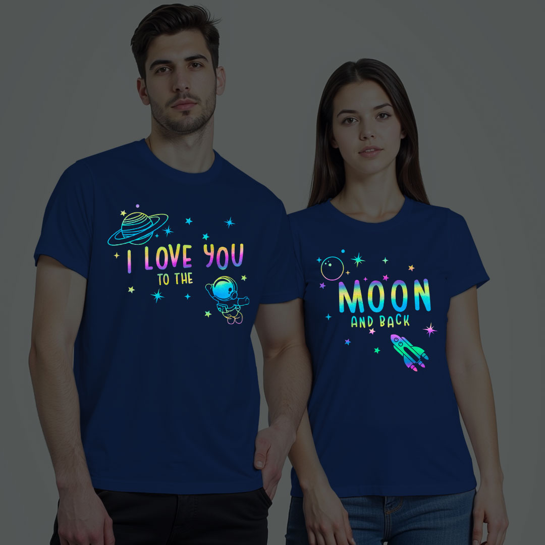 Love you to the Moon Couple Rainbow Reflective T-shirt