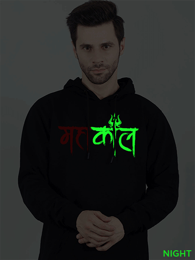 This Hoodie Print absorbs light during the day and emits it at night. The print on the Hoodie will also charge in sunlight or Tubelight and glow in the dark. The duration of the glow depends on the amount of light absorbed by the print