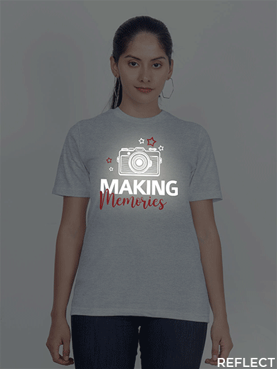 The base color of the print is light grey?subtle on its own but transforms when exposed to light. As light hits the print, it comes to life, glowing brightly and drawing attention. For the best results, light from different angles enhances its reflective brilliance, and even a phone flash instantly reveals its vibrant effect.