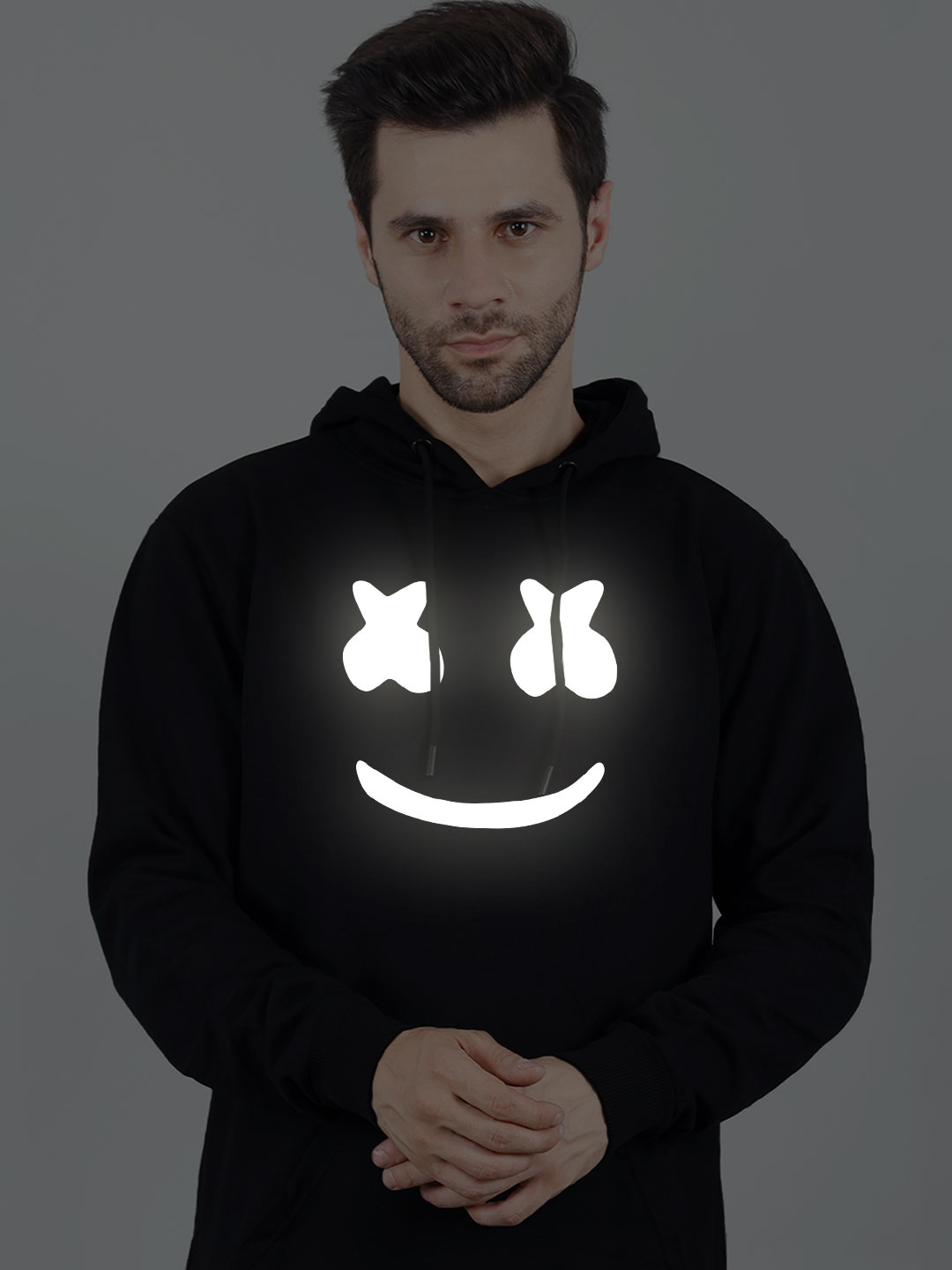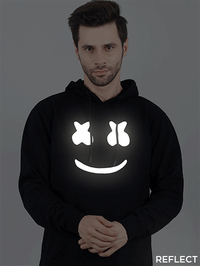 During light hits the print, Reflective Print reflect light. Best for Party wear and Highway or Road also in Night or Day. During Vehicle or other Light hits the Print. Hoodie Print will be visible white Glow